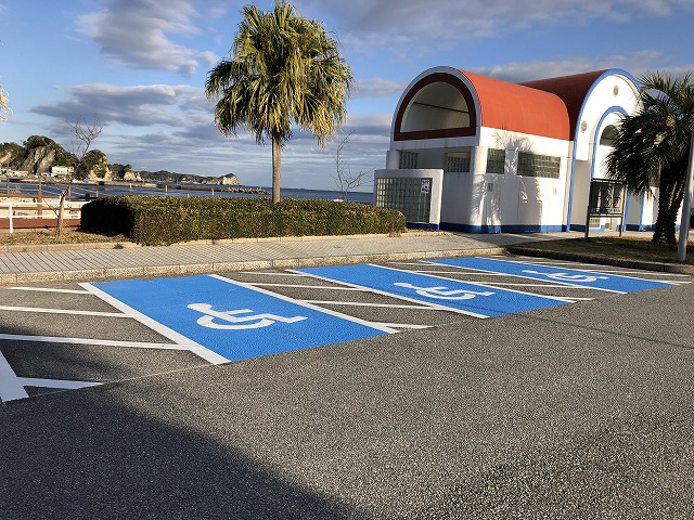 ![]() 海岸側から、管理棟を見る。 クジラのイラスト |